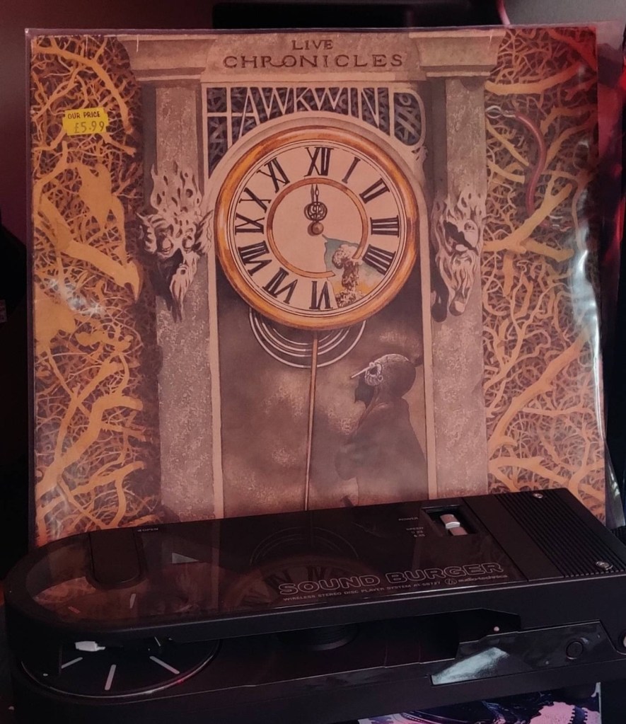 In other news, at times on the show I’ve mentioned that my taste in Hawkwind tends towards the earlier 1970s material and that I’ve never really held the album The Chronicle of the Black Sword in particularly high esteem. As a result, several of you have pointed me towards Hawkwind’s Live Chronicles album as a superior representation of the material – so having picked up an audio technica sound burger recently that allows me to play vinyl on my desk as I’m doing other bits and pieces I’ve been bashing through a whole load of albums I’ve picked up in the last couple of years that I still haven’t got round to spinning. I may well share my thoughts on that sometime soon.