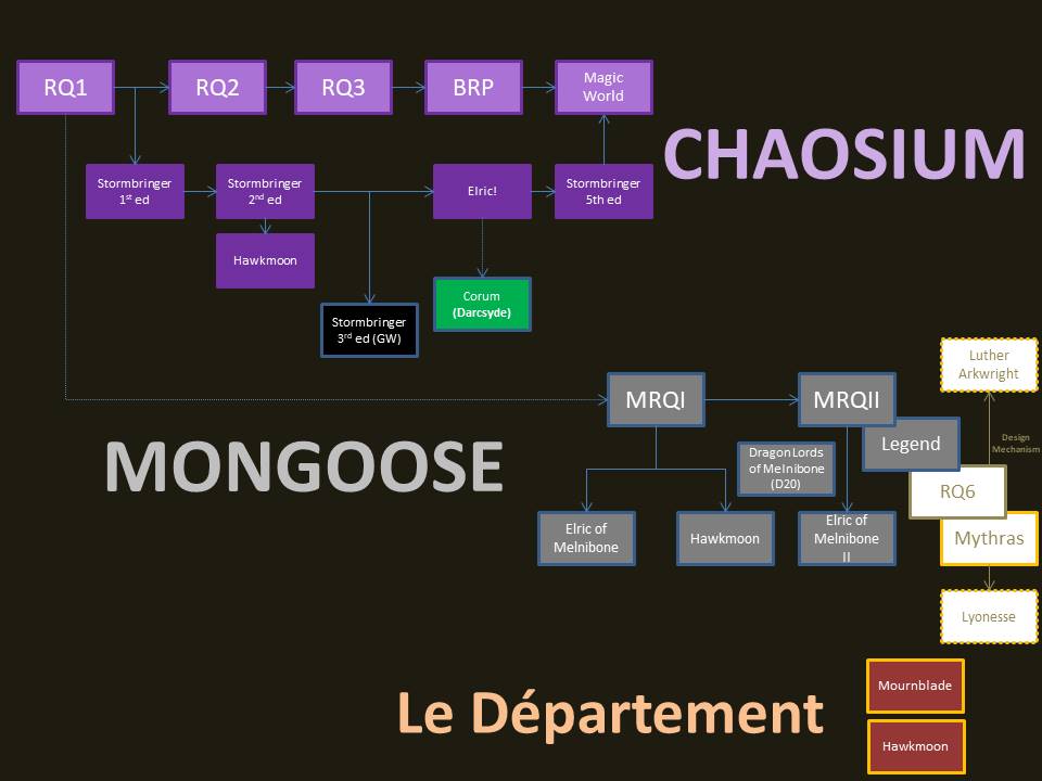 Whilst we consider whether Stormbringer is the Moorcockian RPG to rule them all, we also yak about the lineage of the Stormbringer RPG (see terribly boring powerpoint slide below), gaming as shit-kickers, when games get too meta, cat character sheets, how to nail the dream realms, playing games in Littlewoods cafe, and memories of Oyster Stout (all bad).