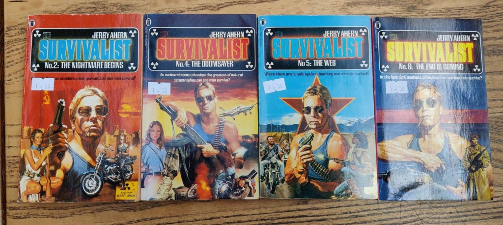 I finally started reading the first of these a few days ago. It’s entertaining. Pulp trash for sure but I can’t stop reading. For a series so fixated on WW3 it’s also pretty ill-informed about a few things, but the author Jerry Ahern certainly does love his guns. In fact, he’s an out-and-out gun nerd, which just makes them all the funnier when, after describing in intricate detail the hero’s handguns right down to the grip, he shows amazing ignorance of other details (best example so far is a couple of nuclear submarines under an ice cap torpedoing each other and causing a 72 (SEVENTY-TWO) megaton explosion. It’s refreshingly short on racist tropes so far and, as it reads like the creative writing of a 13-year-old growing up in the 80s, it’s all very charming so far.