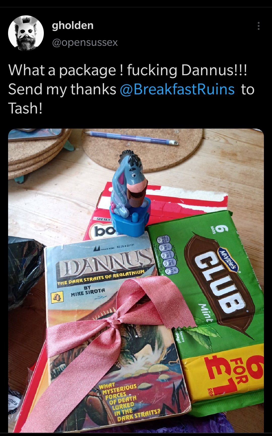 The lucky winner Graham (aka @opensussex) has received his care package along with a follow up warning from tash: