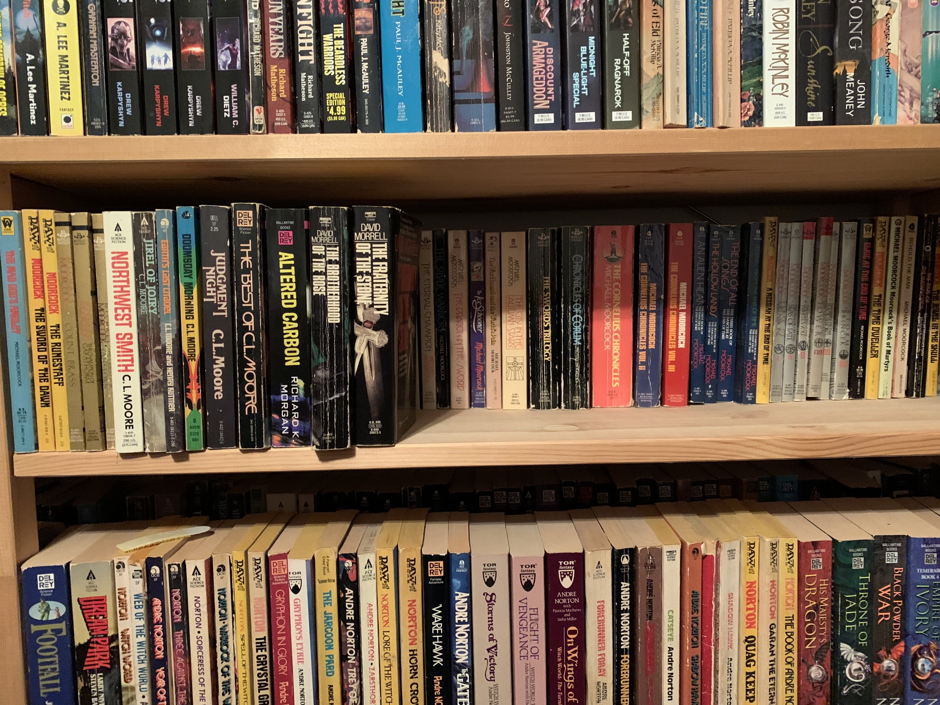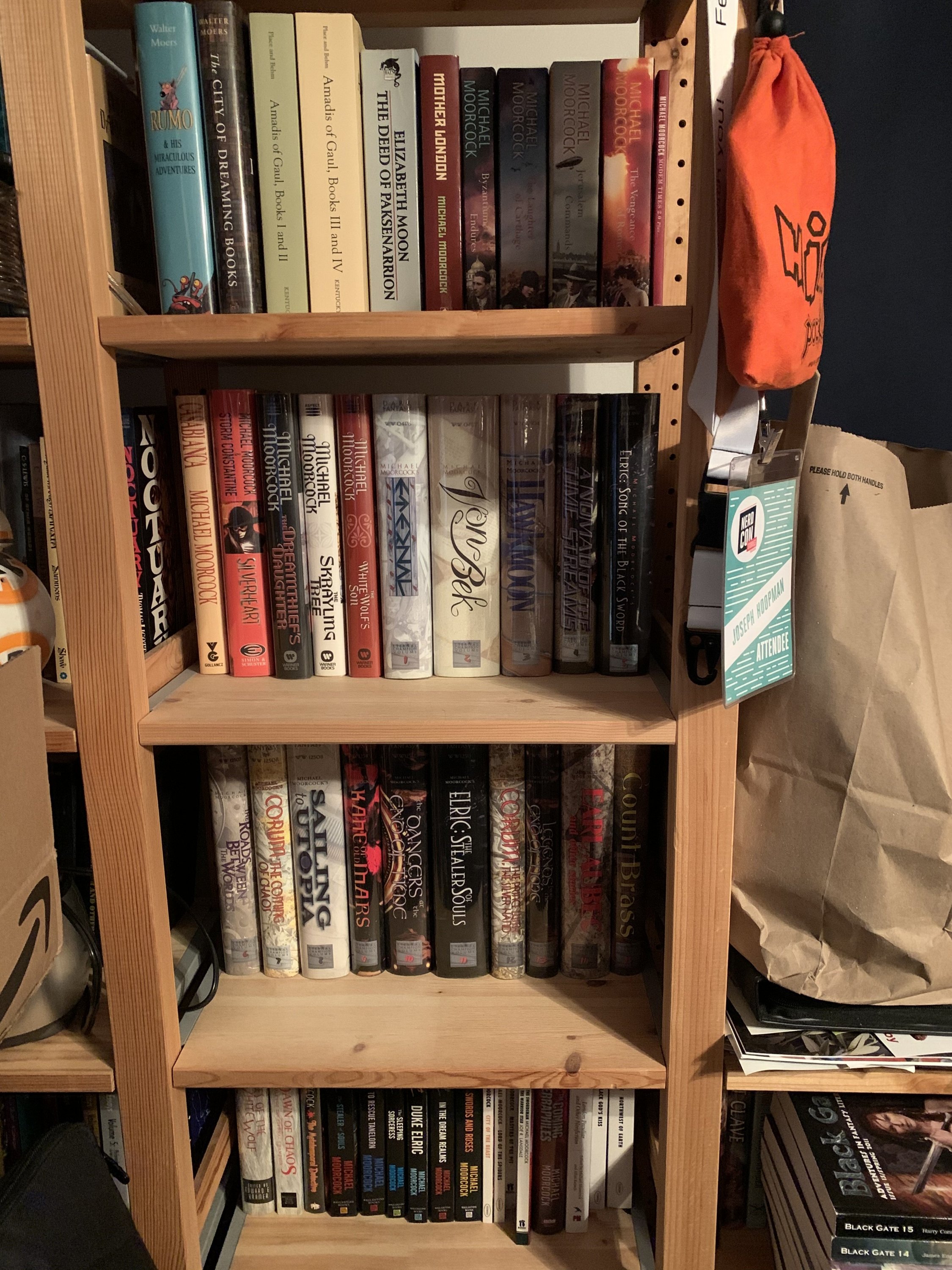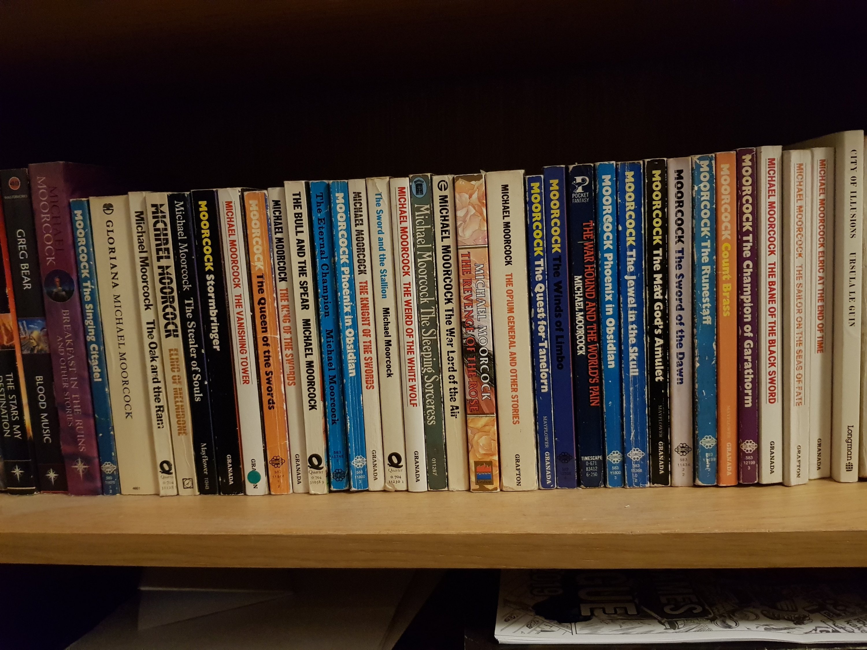 Another fab shelfie here from Twitter compadre @jedwardscott1. Despite being very fond of some of the newer editions and omnibuses I just feel so much closer to those 60s, 70s and 80s paperbacks and there’s a lovely blend of Mayflower, Grafton/Granada and Quintet editions in here. In particular though I’m intrigued by The Warhound and the World’s Pain on there… That’s one I’m not familiar with.